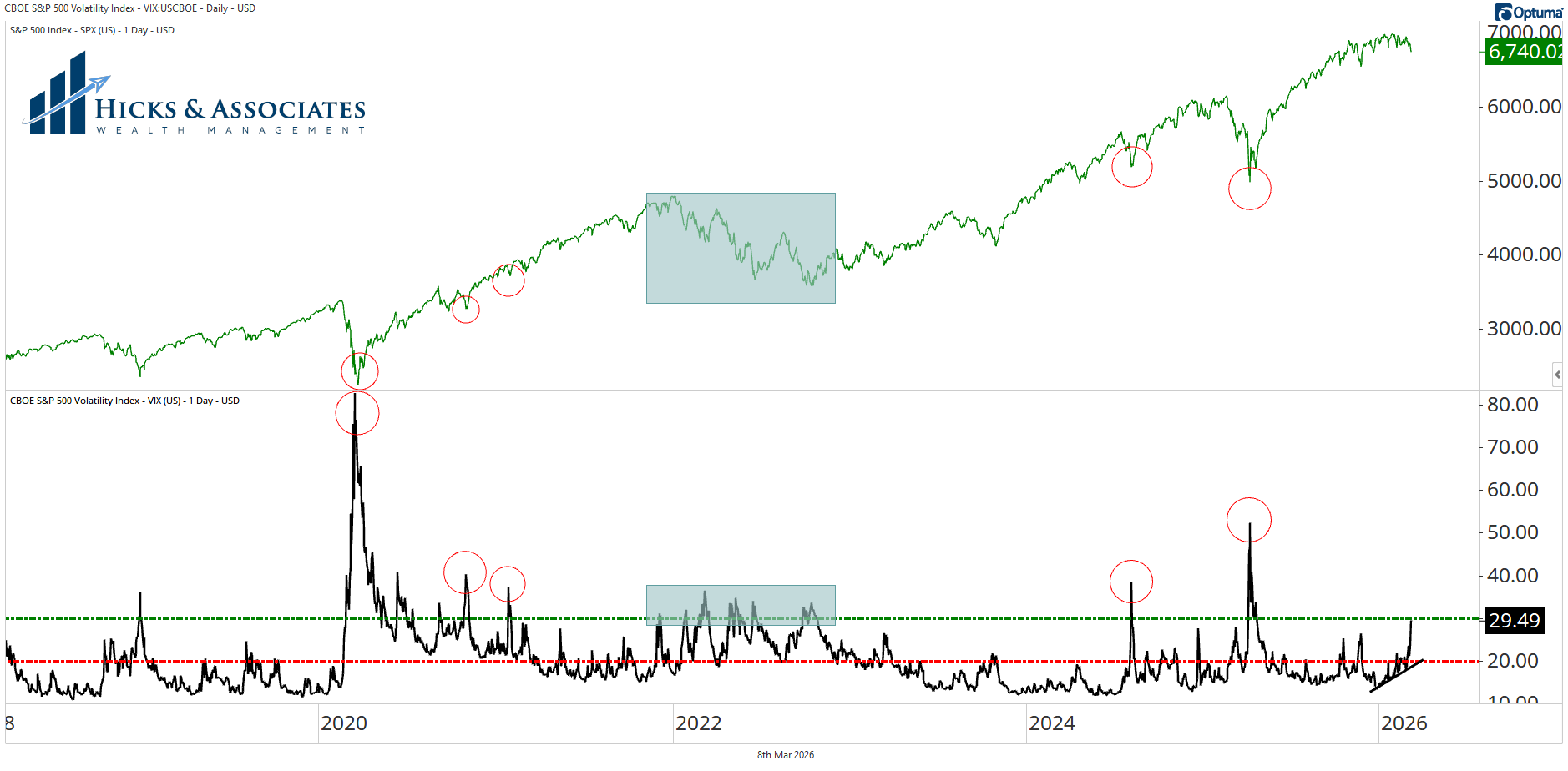 This information may be taken, in part, from external sources. We believe these external sources to be reliable, but no warranty is made as to accuracy. This material is not financial advice or an offer to sell any product. There is no guarantee of the future performance of any Hicks & Associates portfolio. The investment strategies discussed may not be suitable for all investors. Before investing, consider your investment objectives and Hicks & Associates charges and expenses. All investment strategies have the potential for profit or loss.