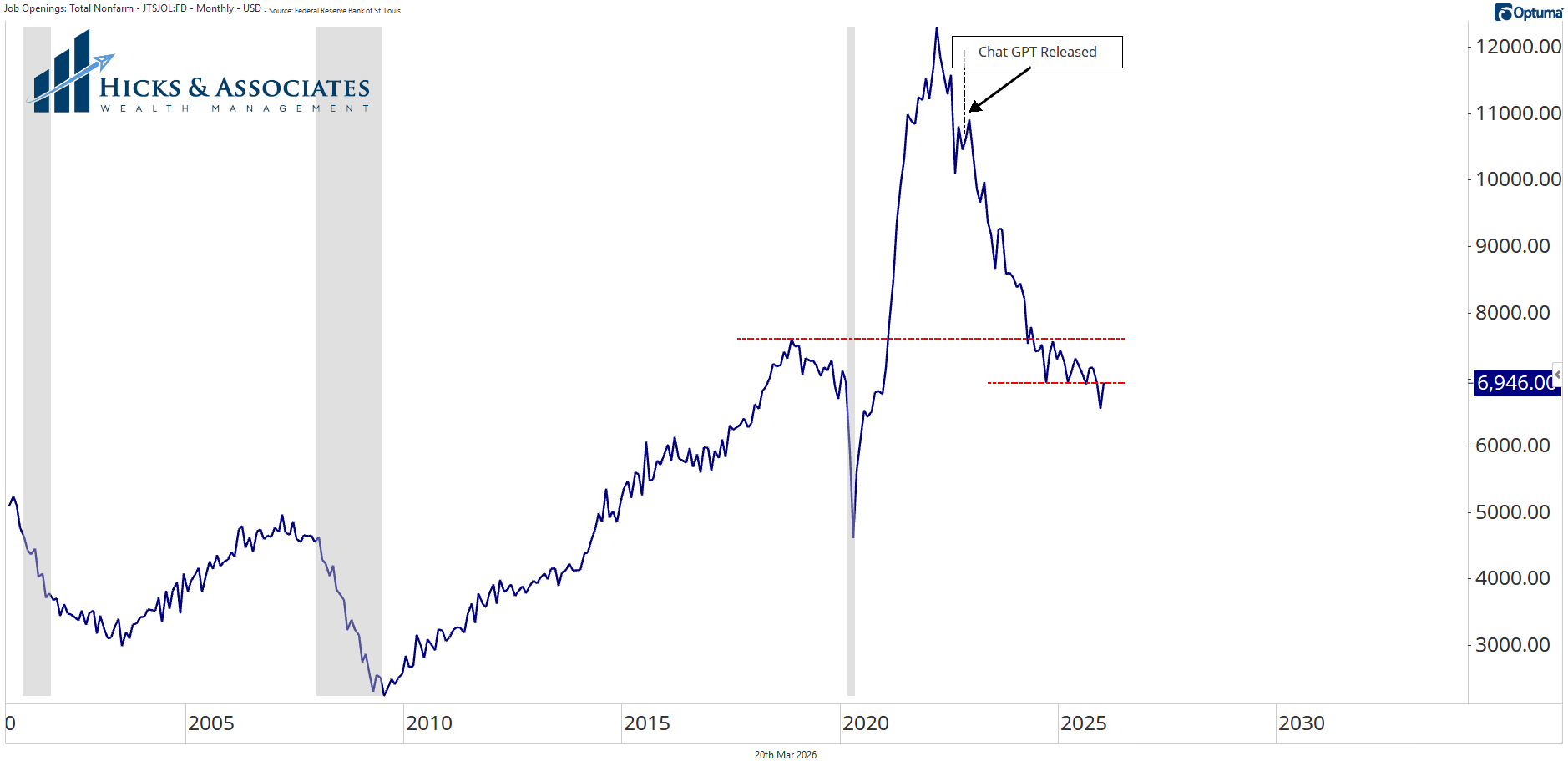 Going into the year, this was my #1 concern. It is still my number one concern: the jobs market. As you can see in our first chart, the number of job openings has plummeted. After Covid, job openings skyrocketed - well beyond a 'normal' trend. As a result, it was to be expected to see some return to normalcy. However, the jobs openings data has not stabilized.